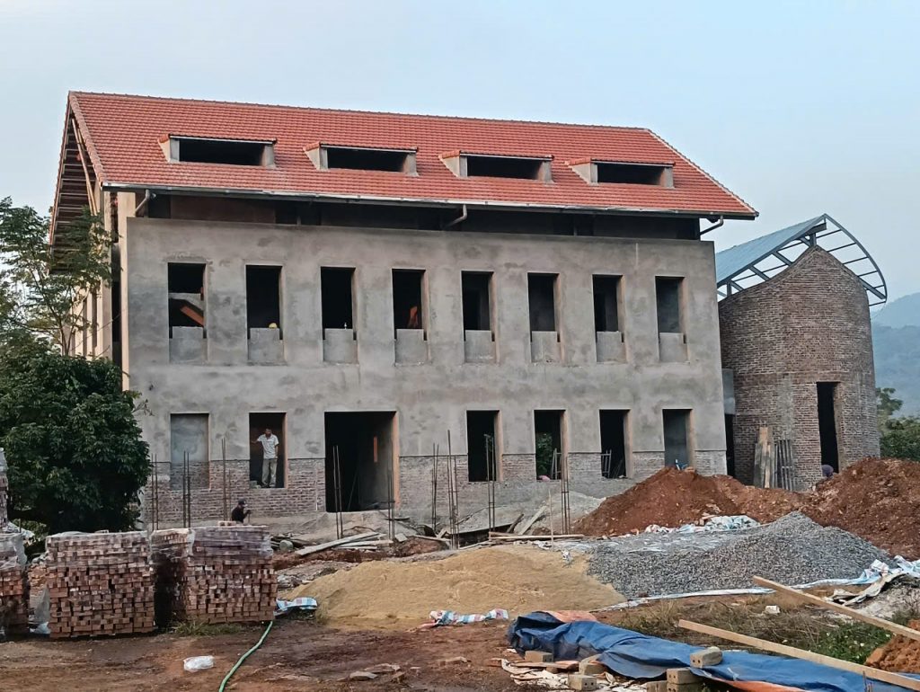 Nhà ở và làm việc của cộng đoàn MTG Hà Nội thuộc khu vực Lạc Sơn, Hòa Bình tiến độ hoàn thiện, chống thấm sàn gồm hành lang, các khu vệ sinh, tầng thư...