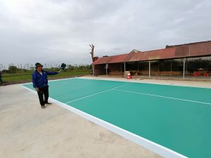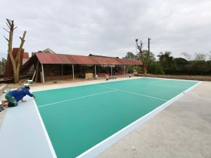– Thi công 2 lớp bả đệm bằng bột bả chuyên dụng cho sân thể thao ( Lớp 1 cách lớp 2 khoảng 2-3 giờ )