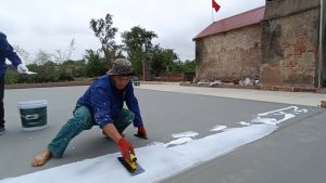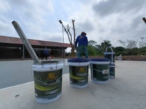 – Trộn hỗn hợp xi măng với nước trước đạt độ đặc sệt sệt sau đó đổ sơn chống thấm và khuấy đều lên ( Khuấy bằng máy khuấy chuyên dụng) sau đố tiến hành thi công.