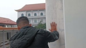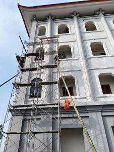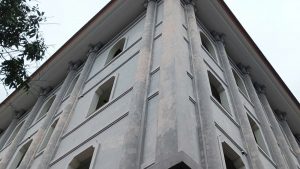 Hai bên tường các hành lang và toàn bộ ngoại thất đã bị bong chóc, bay mầu.